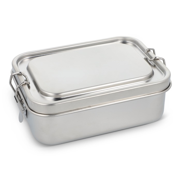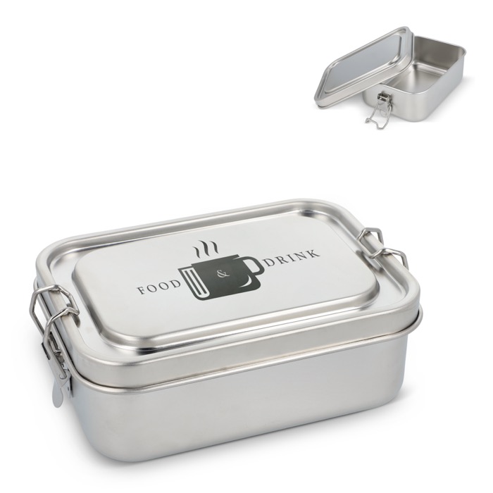 RVS lunchbox met een stevige sluiting, bedoeld voor dagelijks gebruik op kantoor of onderweg. Het lekdichte systeem helpt morsen in rugzakken en aktetassen te voorkomen, zodat de inhoud goed beschermd blijft. Stevige constructie voor intensief gebruik en eenvoudig schoonmaken. Je ontvangt hem in een geschenkdoos, zodat je hem bij bedrijfsacties kunt uitdelen zonder extra verpakking. Een goede keuze voor bedrijfskantines, welzijnscampagnes en merkmerchandise op interne events.