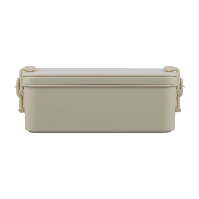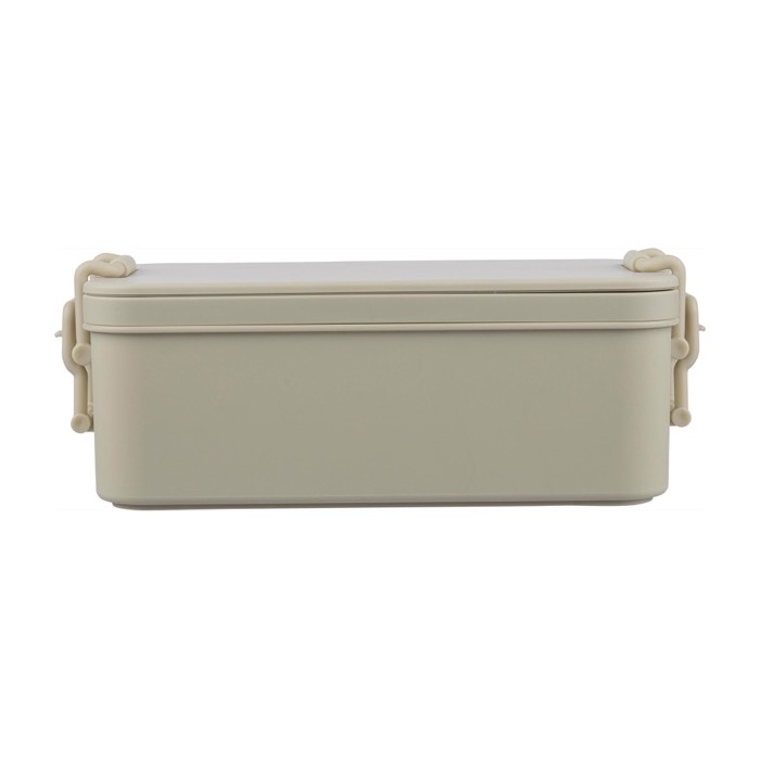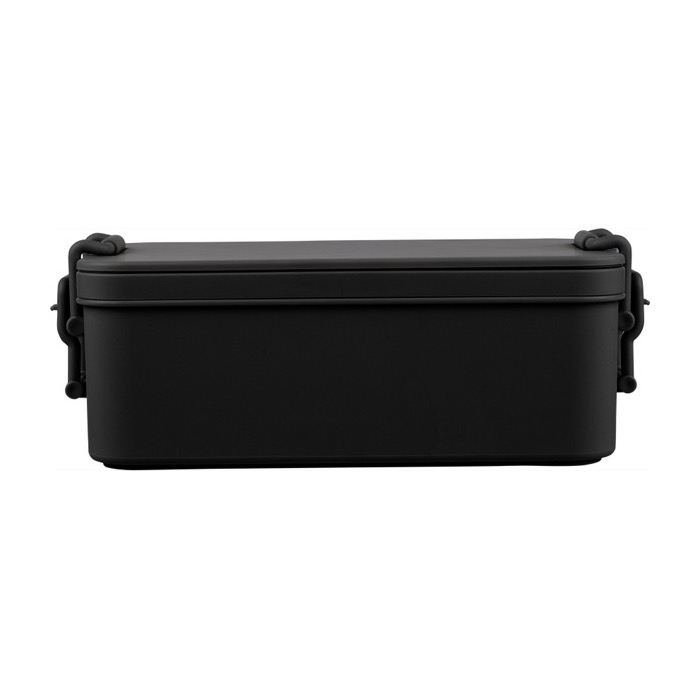 Plastic lunchbox met twee lagen, clip sluiting en bijpassend deksel. Ontworpen om maaltijden te organiseren op het werk of onderweg. Het onderste, grotere compartiment wordt gecombineerd met een kleinere bovenbak die je kunt stapelen. Zo neemt hij minder ruimte in bij vervoer en opslag. De tussenlaag bevat een set van 3 stuks bestek. Zo kan je buiten kantoor eten zonder extra accessoires. Totale inhoud 2200 ml en bulk geleverd, geschikt voor interne acties en bedrijfsevenementen.