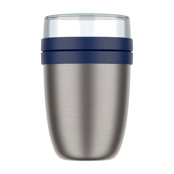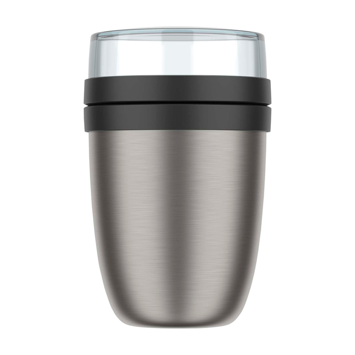 Praktische geïsoleerde lunchpot met twee aparte vakken, zodat je ingrediënten gescheiden blijven. Elk vak heeft een eigen deksel, waardoor mengen wordt voorkomen. Je eten blijft 6–8 uur warm of tot wel 12 uur koud. De doorzichtige bovenste bak heeft een inhoud van 200 ml, de onderste box biedt 500 ml ruimte. Gemaakt van stevig materiaal, met een buitenkant die koel en droog blijft. Voor een lange levensduur raden we handwas aan; de plastic onderdelen van het deksel kunnen gewoon in de vaatwasser.