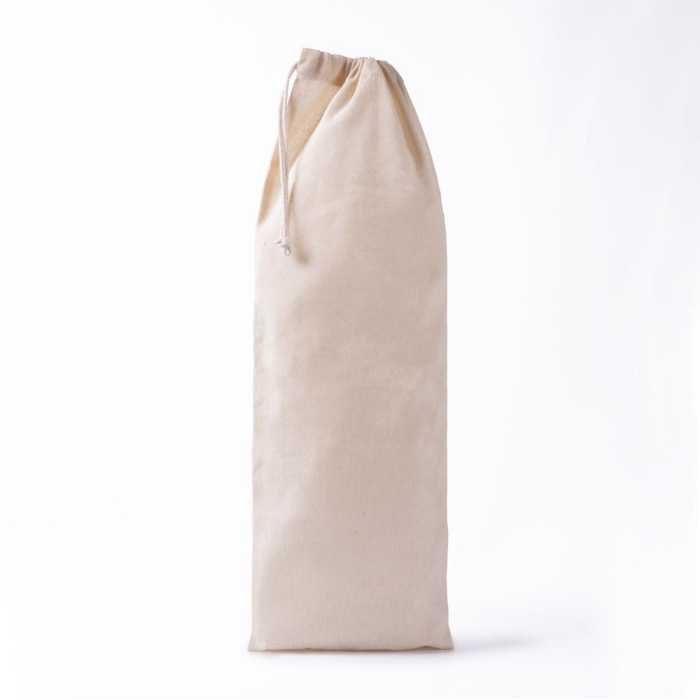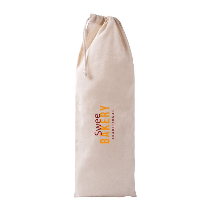 Profiteer van deze gerecyclede katoenen broodtas met koordsluiting. Een duurzamere optie voor het dragen van brood en het vermijden van papieren zakken.