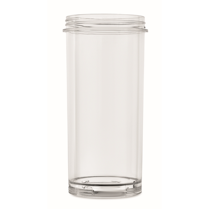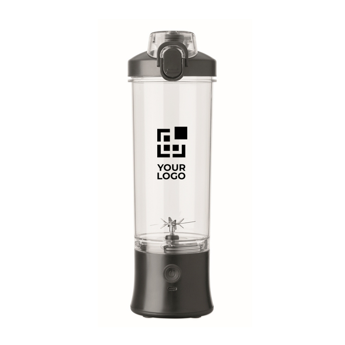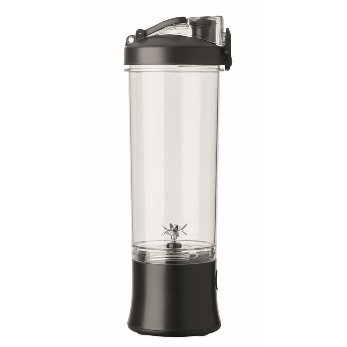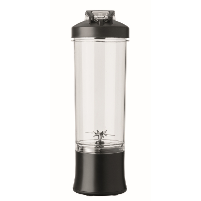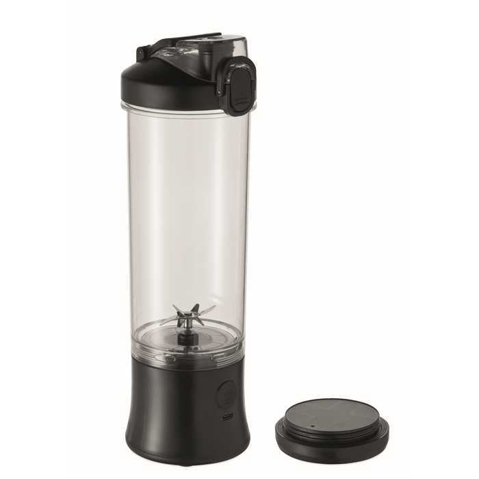Draagbare blender van PCTG met PP-deksel, extra drinkdeksel en draaglus om hem comfortabel mee te nemen. Integreert een motor van 18.000 rpm voor het bereiden van smoothies en snelle mengsels in het dagelijks gebruik. Werkt met 2 oplaadbare batterijen en wordt geleverd met een USB type C-kabel om op te laden. Inhoud van 600 ml, geschikt voor individueel gebruik op kantoor of onderweg. Praktische optie voor interne acties, welkomstpakketten of corporate merchandising.