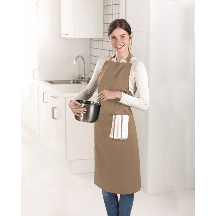 Dit verstelbare keukenschort is een slimme keuze voor kookworkshops of dagelijks gebruik. Het is gemaakt van een duurzame mix van 90% polyester en 10% katoen (190 gr/m²), wat garant staat voor comfort. De twee voorvakken zijn superhandig om keukengerei of een doek in op te bergen. Zo heb je alles direct bij de hand. Kies een kleur en laat het schort bedrukken met je logo, zodat het perfect past bij het imago van jouw merk. Een ideale manier om de zichtbaarheid van je bedrijf te vergroten! Profiteer van onze Express-service als je de bedrukte schorten snel nodig hebt voor een evenement of promotiecampagne.