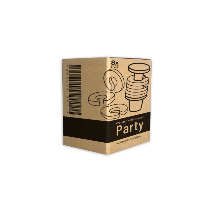 Flesstop van kurk en hout met een bovenkant van bamboe, bedoeld om de fles af te sluiten en drankjes te helpen organiseren tijdens bijeenkomsten. Inclusief gekleurde siliconen ringen die je als herkenning voor glazen of bekers gebruikt, zodat iedereen zijn eigen glas zonder verwarring terugvindt. Het is eenvoudig in gebruik en geeft een opvallend detail op proeftafels of bij feestjes. Een praktische optie voor merkacties op evenementen, in de horeca of als zakelijke geschenken.