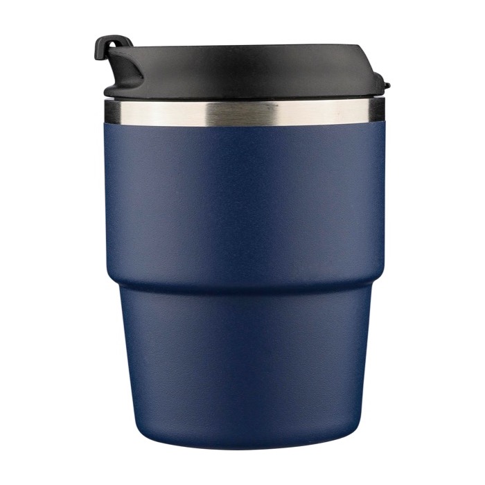 - Compacte koffiebeker met dubbelwandige vacuümisolatie en schroefdeksel
