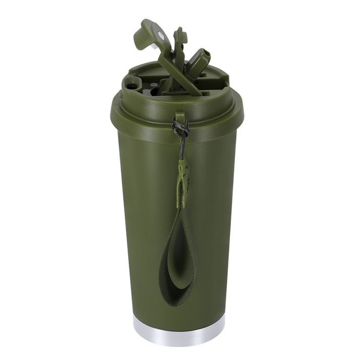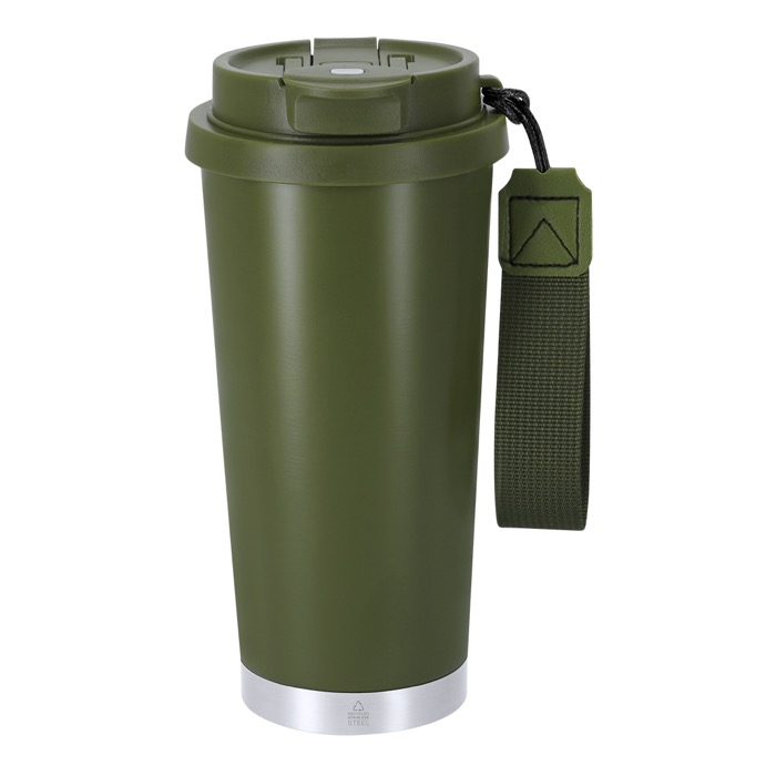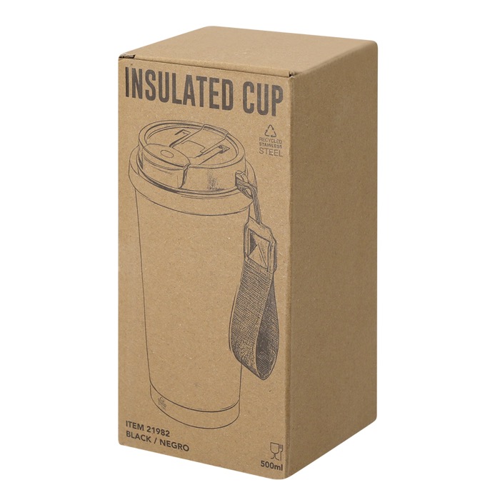 RVS take-awaybeker van gerecycled staal met draagriem 500 ml