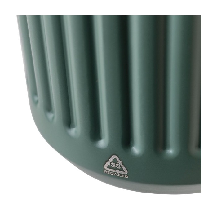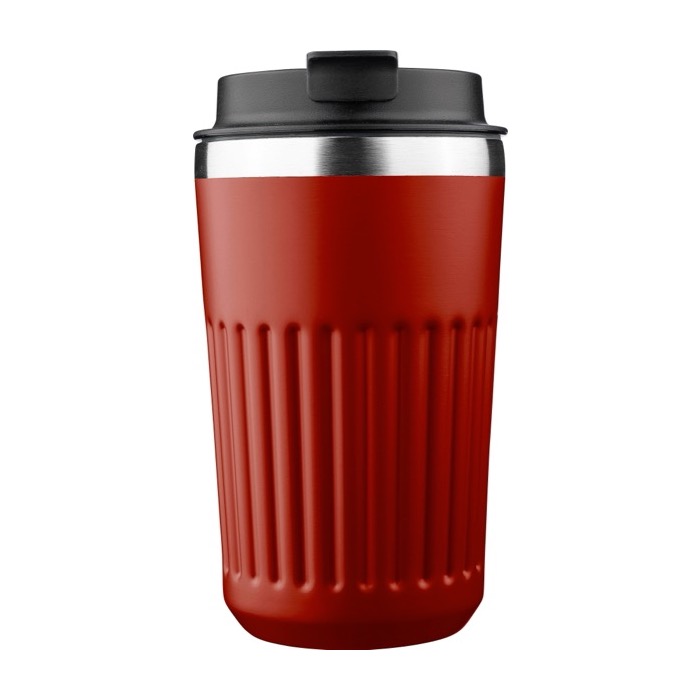 To-go beker van gerecycled roestvrij staal met dubbelwand en een ruwe buitenstructuur. Gemaakt voor dagelijks gebruik op kantoor of onderweg. De binnenkant is van roestvrij staal 304 en de buitenkant van roestvrij staal 201. Een praktische combinatie om de temperatuur vast te houden en een drukke werkdag aan te kunnen. Inclusief kunststof deksel voor een makkelijke sluiting. Aanbevolen voor interne acties, events en merchandising met logo.