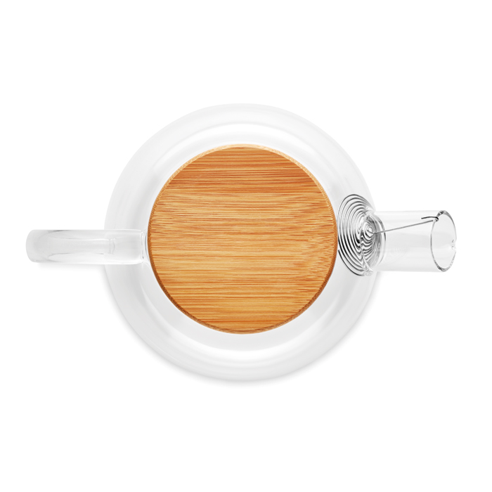 Theepot van hoogwaardig borocilicaatglas met RVS theezeef en bamboe deksel. Inhoud 850ML. Bamboe is een natuurlijk materiaal waardoor kleur per item kan verschillen.