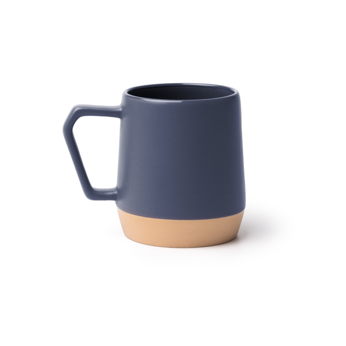 Keramische mok met matte afwerking aan de buitenkant en een binnenkant in een kleur die bij de body past. Het tweekleurige ontwerp heeft bovenaan de gekozen tint en onderaan een natuurlijke kleur, voor een strakke en moderne look. Het geometrische oor ligt prettig in de hand en maakt de mok makkelijk herkenbaar in het dagelijks gebruik. Met een inhoud van 320 ml past hij in kantoren, vergaderruimtes en pauzezones. Een praktische optie om koffie of infusies te serveren bij interne merkacties.