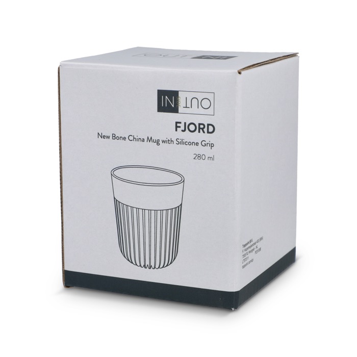 - Porseleinen mok met isolerende, geribbelde siliconen hoes