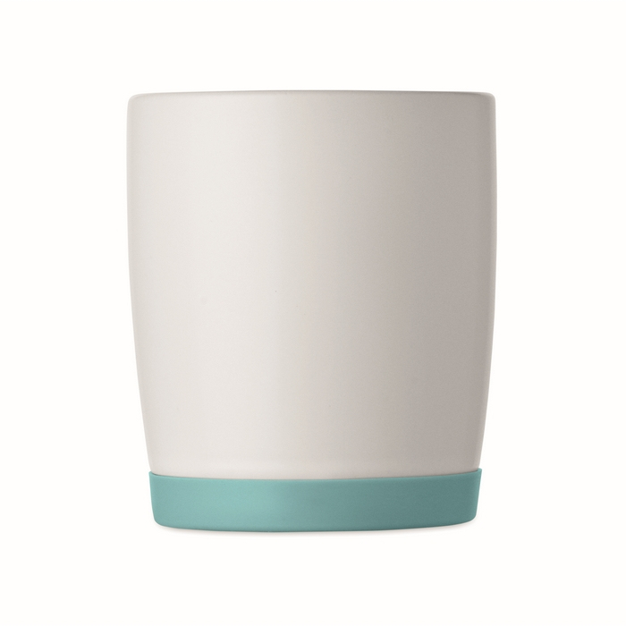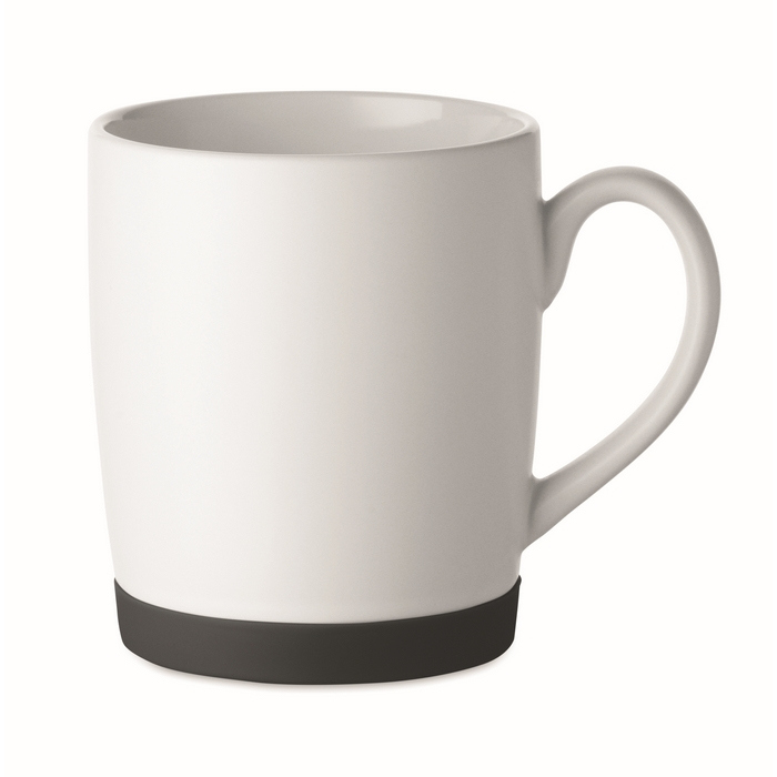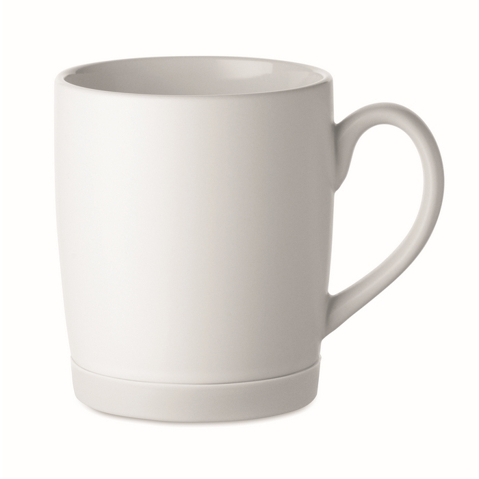 Matwitte keramische mok met gekleurde siliconen basis 300ml