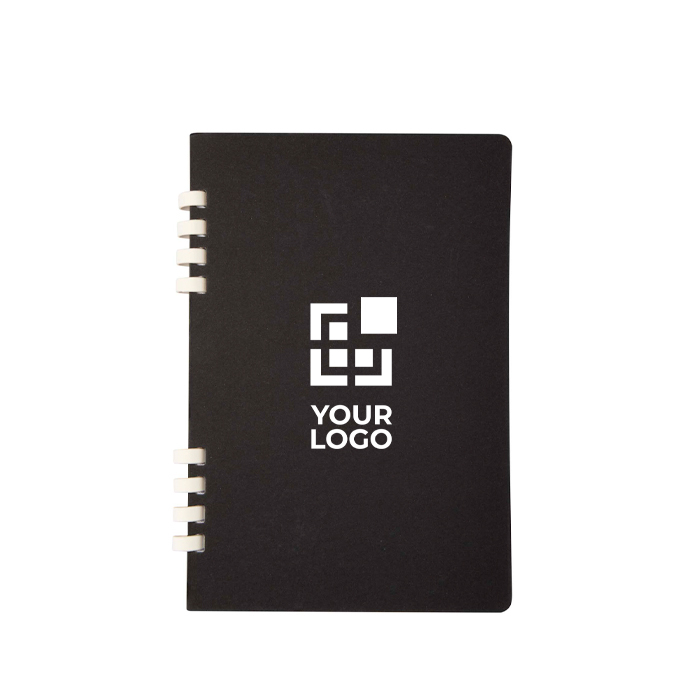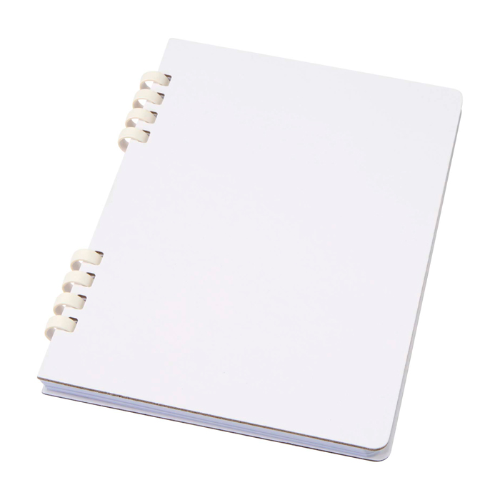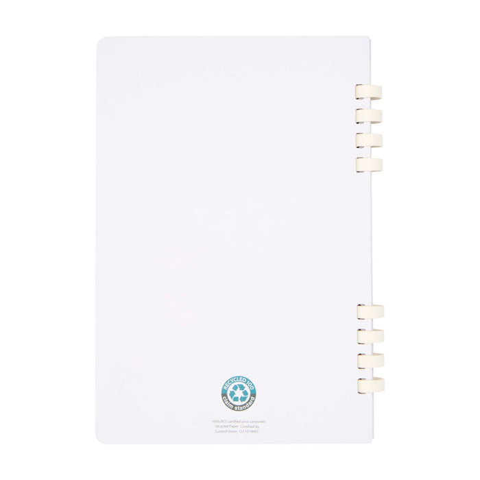 A5-notitieboek met harde kaft, spiraalbinding en 60 gelinieerde vellen om netjes notities te maken. Het binnenwerk is gemaakt van gerecycled papier van 70 g/m² met RCS-certificaat (Recycled Claim Standard), bedoeld voor dagelijks gebruik op kantoor, in meetings of trainingen. De harde kaft helpt je comfortabeler te schrijven als er geen tafel beschikbaar is. De spiraal zorgt dat je het volledig kunt openvouwen en snel kunt bladeren. Een handige keuze voor welkomstacties, evenementen en bedrijfsitems met logo.