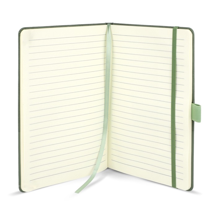 Elegant notitieboek met elastische sluiting en lint. Geeft een verfijnde touch aan je notities en versterkt de professionele uitstraling van je bedrijf.
