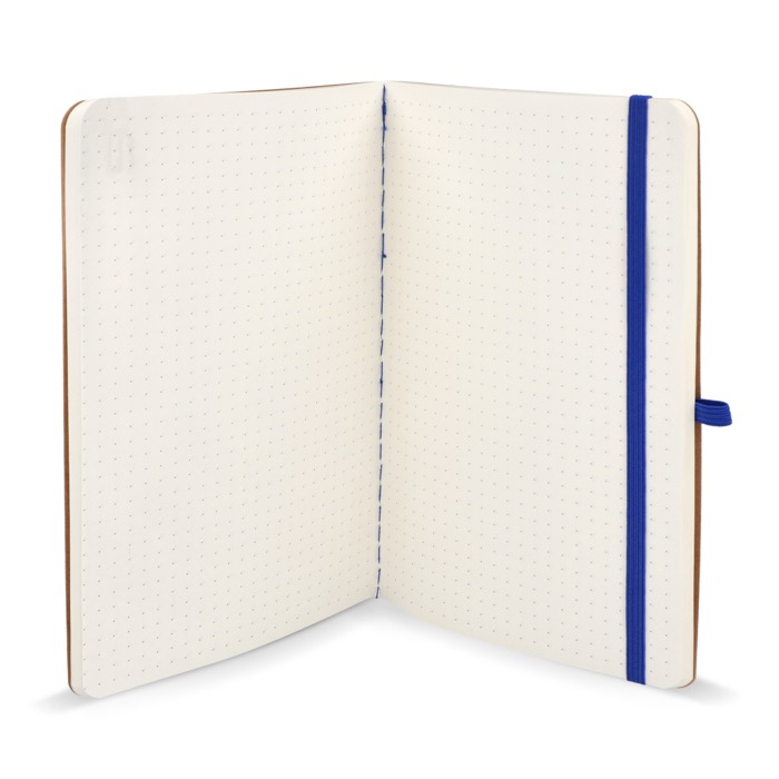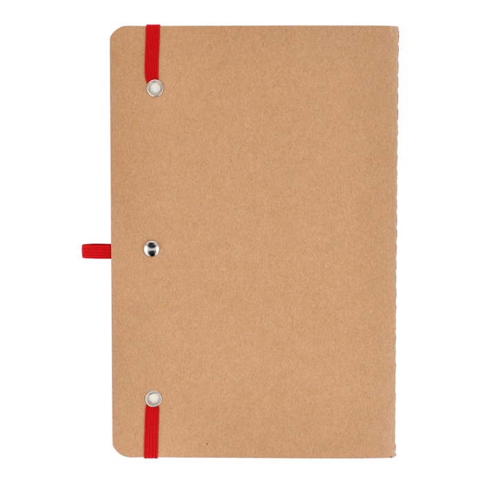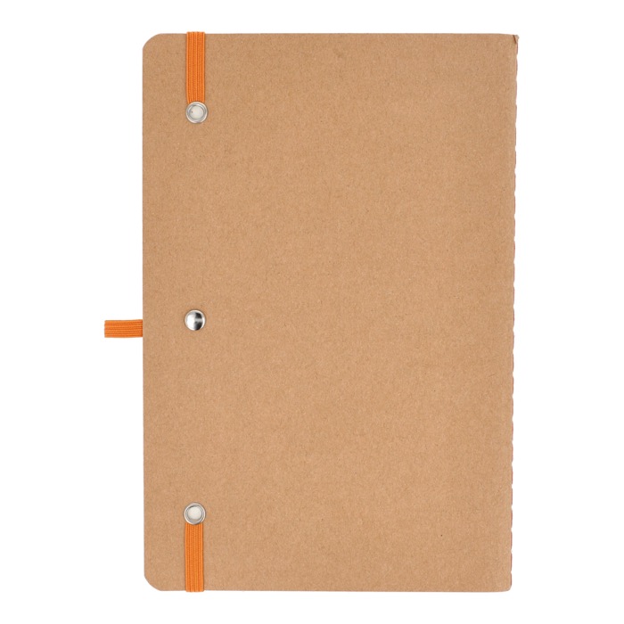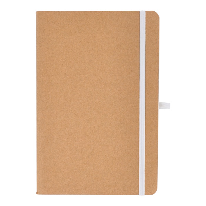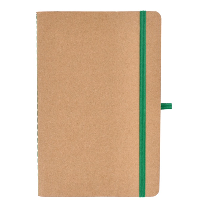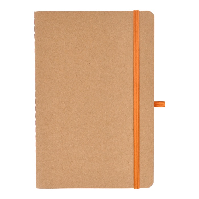 A5-notitieboek met een zachte kaft van kraftpapier, afgeronde hoeken, gekleurde elastische sluiting en pennenlus. Het bevat 60 gelinieerde crèmekleurige vellen van FSC-gecertificeerd papier. Een praktische en natuurlijk ogende optie voor dagelijkse aantekeningen.