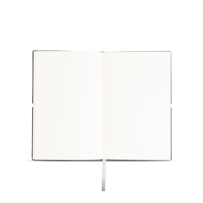 A5-notitieboek met Gerecyclede leren kaft. Een geschenk dat opvalt door zijn verschil, vooral vanwege de Gerecyclede leren kaft. In A5-formaat, met horizontaal elastisch koord. Bevat 160 pagina's in crème papier van 80 g/m², gestippeld.