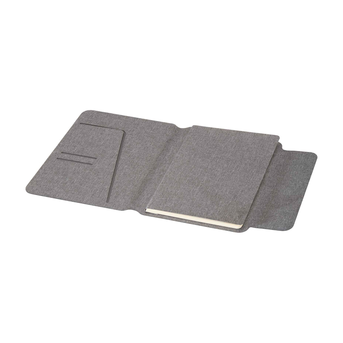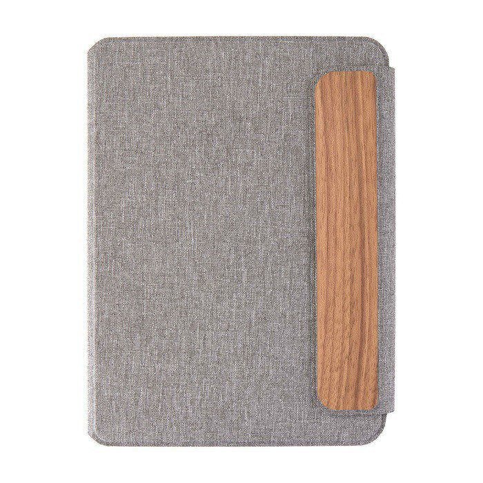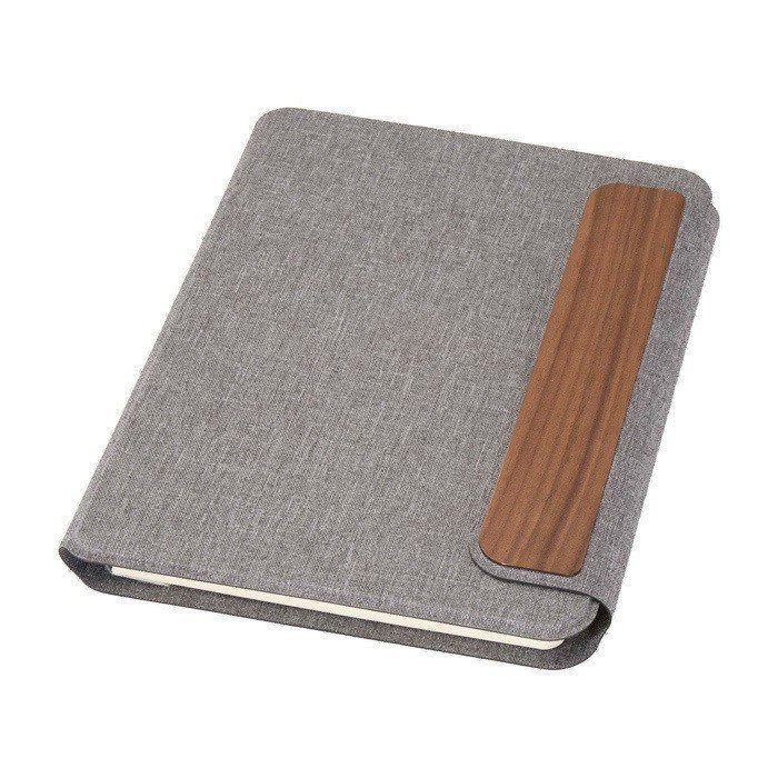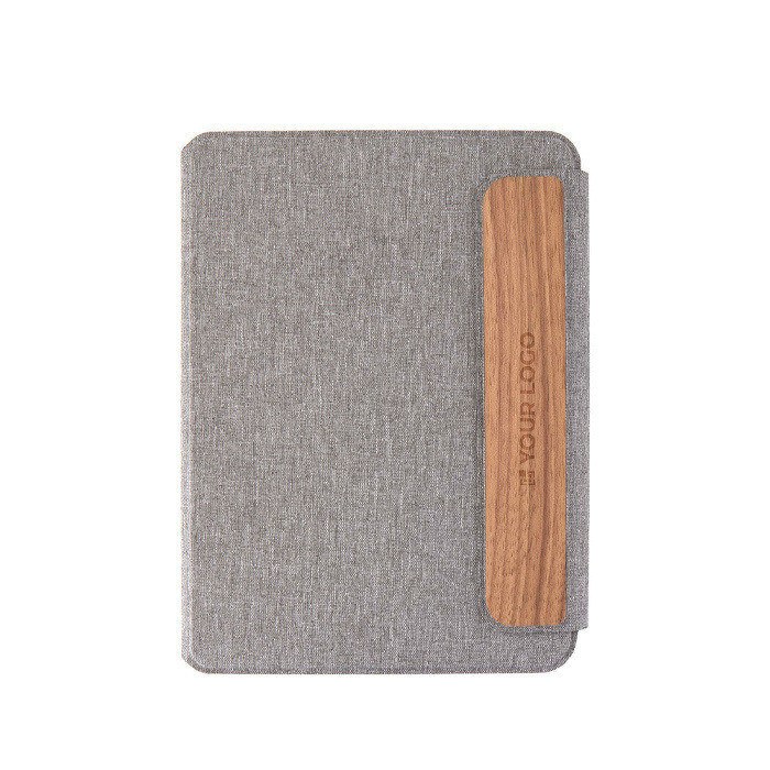 De Andean A5-portfolio is deels vervaardigd van RCS-gecertificeerd gerecycled post-consumer polyester, een duurzamer alternatief dat het gebruik van nieuwe materialen vermindert. De portfolio heeft een slanke grijze harde kaft met afgeronde hoeken, nauwkeurig gelaste afwerking en een magnetische sluiting, voorzien van een verfijnd walnoothouten accent voor een moderne, stijlvolle uitstraling. Binnenin bevindt zich een verwijderbaar notitieboek met zachte kaft en 64 crèmekleurige gelinieerde pagina’s van 80 g/m² papier uit verantwoorde bronnen. Geleverd in een kraftkleurige papieren sleeve.
