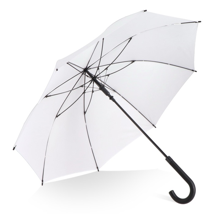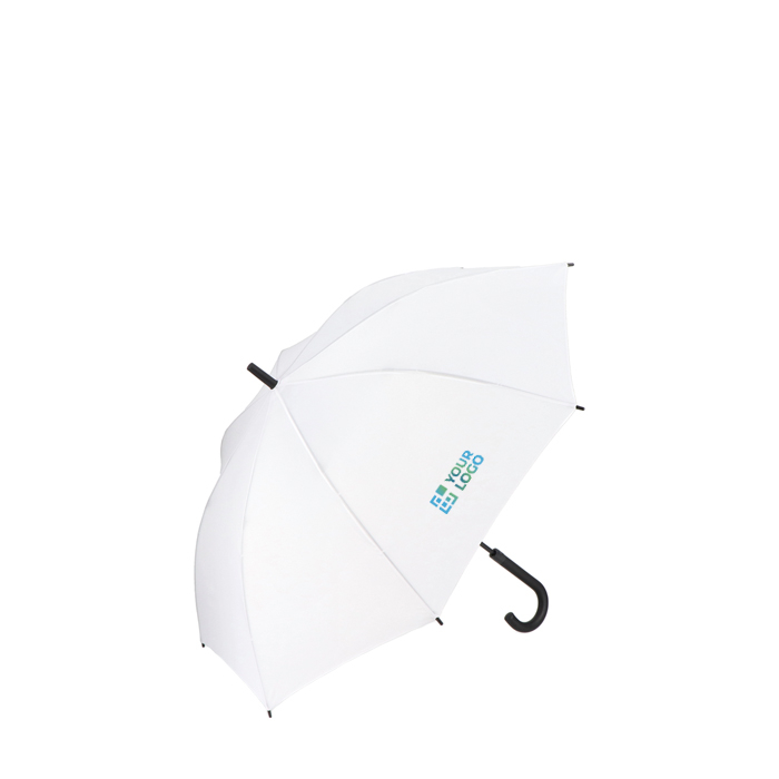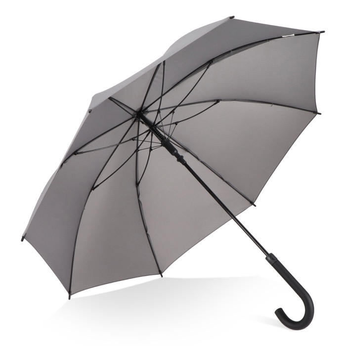 Stormbestendige paraplu met automatische opening en glasvezel frame. Beschermt je op regenachtige dagen terwijl je merk zichtbaar blijft.