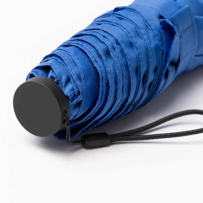 Mini opvouwbare paraplu van gerecycled plastic met 190T pongee-stof en handmatige opening, bedoeld om je te begeleiden tijdens je dagelijkse verplaatsingen. Hij combineert baleinen van glasvezel met een centrale aluminium constructie voor extra stevigheid en beter gedrag bij wind. Met UV-bescherming UPF50 en een transparante coating voor prettiger gebruik op zonnige dagen. Door het compacte formaat berg je hem makkelijk op in je rugzak, tas of handschoenenkastje. Inclusief zwarte draaglus en bijpassende hoes, handig voor bedrijfsacties op beurzen of als intern presentje.