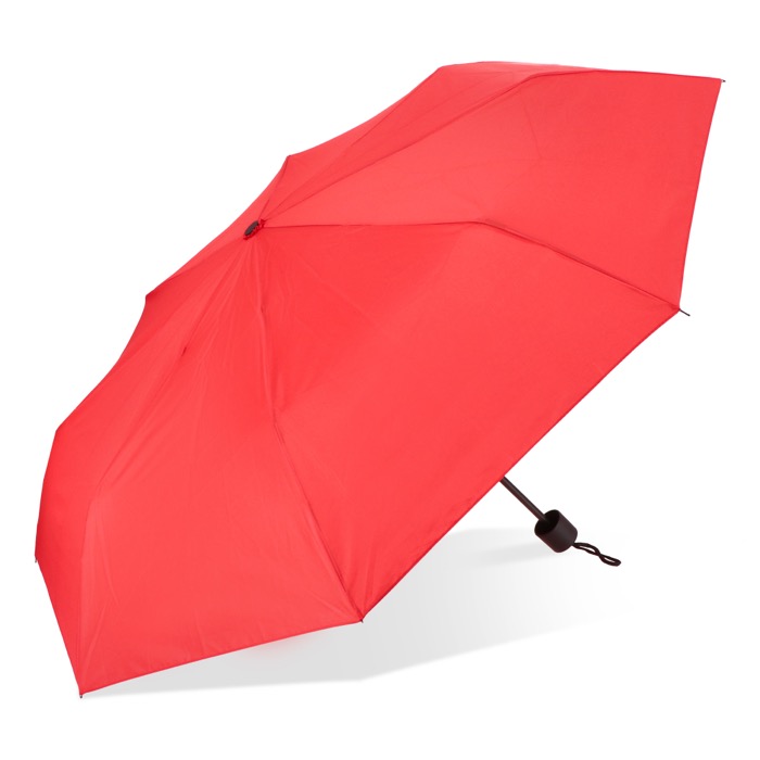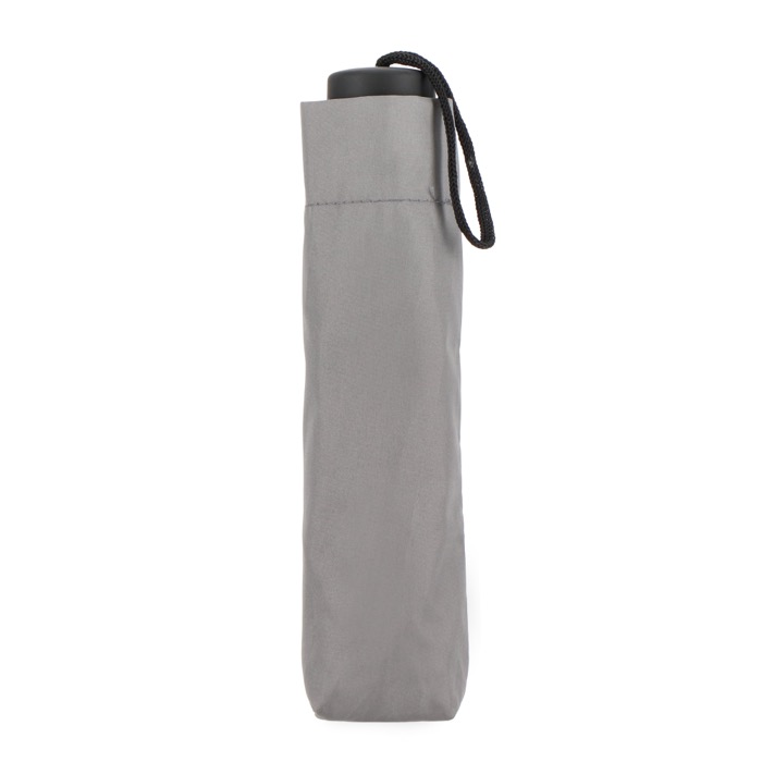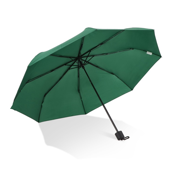 Compacte paraplu met 190T polyester doek, ergonomisch handvat en hoes voor gemakkelijk transport. Biedt bescherming en comfort in elke omgeving.