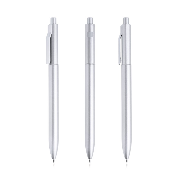 Pen van gerecycled ABS met een functioneel design dat duurzaamheid uitstraalt. De bovenzijde heeft een gestreept reliëf dat ongeveer een derde van de lengte beslaat en elegant het clipgedeelte integreert. Met drukmechanisme en zwarte inkt, een praktische en betrouwbare optie voor dagelijks gebruik. De metallic kleuren geven een verfijnde uitstraling, ideaal voor zowel professionele omgevingen als stijlvolle promotionele geschenken.