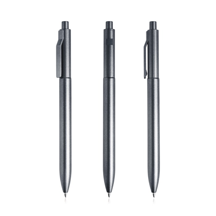 Eco-pen met geïntegreerde clip en reliëfstrepen, zwarte inkt