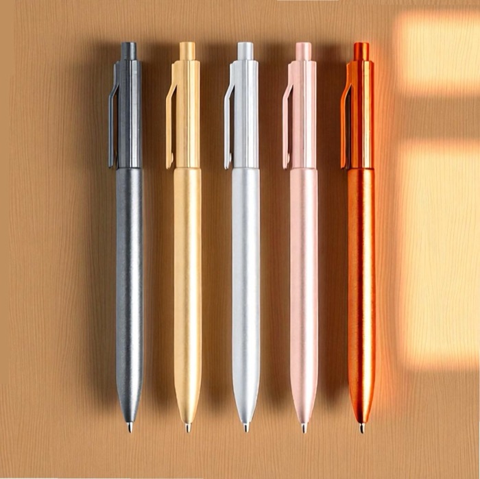 Biologisch afbreekbare pennen met kleurdetail en blauwe inkt