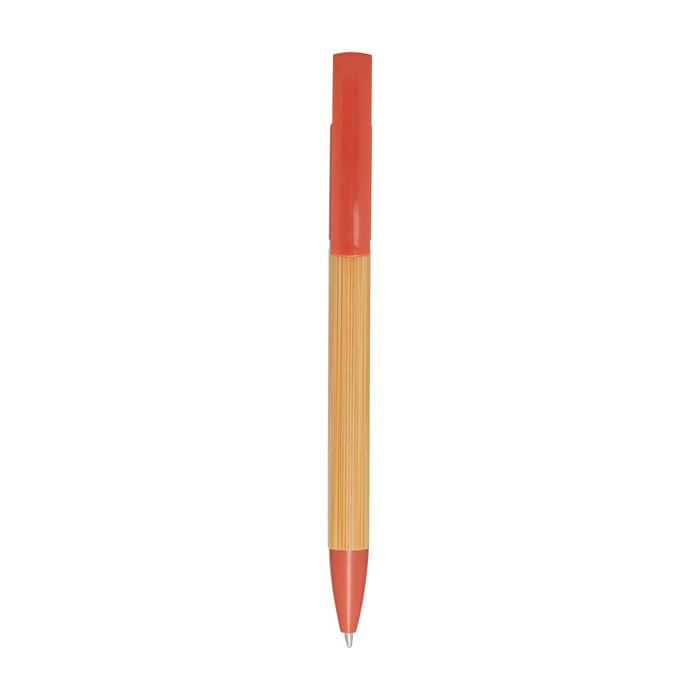 Bamboe balpen die ook dienst doet als telefoonhouder. De knop en middenring zijn gemaakt van gerecycled plastic, de punt is gemaakt van messing en de houder is gemaakt van verantwoord gewonnen bamboe. Inktkleur: Blauw. Schrijflengte: 1000 meter. Stiftmaat: 1,0 mm.