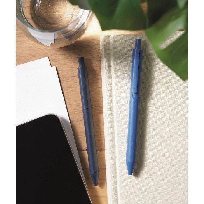 Verras nieuwe medewerkers, studenten of bezoekers van je stand met deze milieuvriendelijke pen. Dit budgetvriendelijke product is gemaakt van 50% tarwestro en 50% PP. De pen werkt met een drukknopsysteem en schrijft met blauwe inkt. Deze bestseller is verkrijgbaar in verschillende kleuren. Je kunt de pen bedrukken met je logo via tampondruk of ronde zeefdruk. Bestel deze slimme giveaway met onze Express-service!