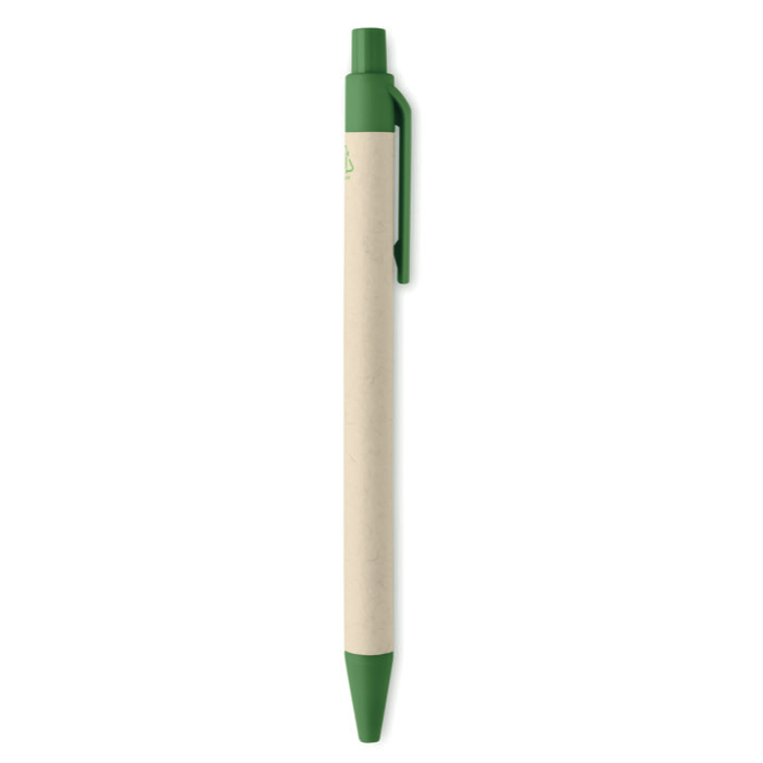 Pen gemaakt van gerecyclede melkpakken en PLA-maïs, met een zeer betaalbare prijs en verschillende opties om uw logo in kleur te bedrukken.