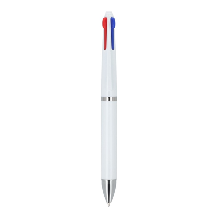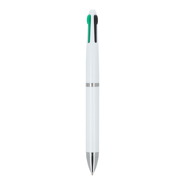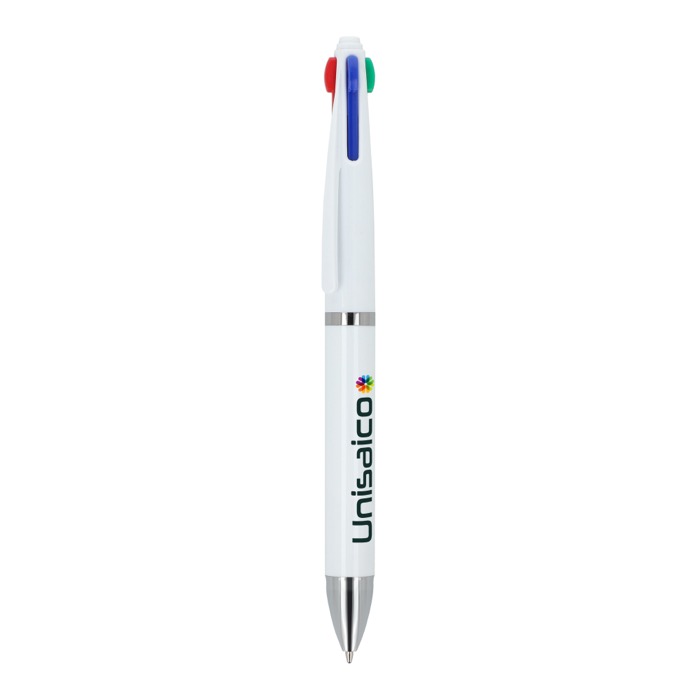 Plastic pen met een klassiek design en een 4-kleuren schrijfsysteem. Je wisselt vanuit één behuizing tussen zwarte, blauwe, rode en groene inkt. Zo maak je sneller aantekeningen, correcties en markeringen zonder van pen te wisselen. Het keuzemechanisme is snel en prettig voor dagelijks gebruik op kantoor, bij de receptie of in de klantenservice. Een praktische oplossing voor teams die werken met documenten, vergaderingen en planning. Aanbevolen voor merchandisingacties op beurzen, congressen en interne trainingen.