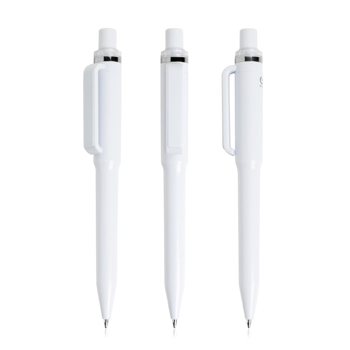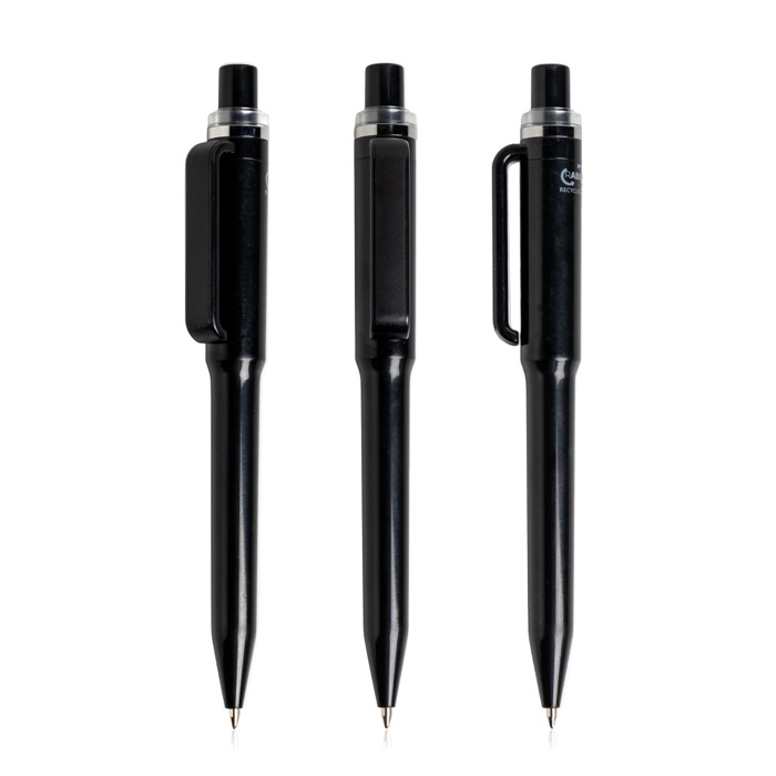 Pen van gerecycled ABS met een modern design, geïnspireerd op onze drinkwarecollectie. Met drukmechanisme en vloeiende blauwe inkt. Verkrijgbaar in verschillende kleuren: een duurzame en stijlvolle keuze voor dagelijks gebruik