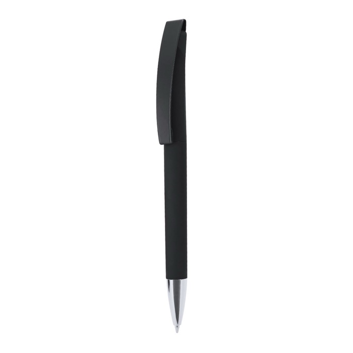 Klikpen met een rubberen afwerking voor extra grip bij dagelijks gebruik. De pen heeft een punt met gemetalliseerde afwerking en een clip die speciaal is ontworpen voor lasergravering met spiegeleffect. Zo valt je logo of tekst extra goed op en blijft het resultaat scherp. Schrijft met blauwe inkt, geschikt voor kantoor en receptie. Een praktische keuze voor branding op beurzen, interne trainingen of bij uitgifte aan servicebalies.