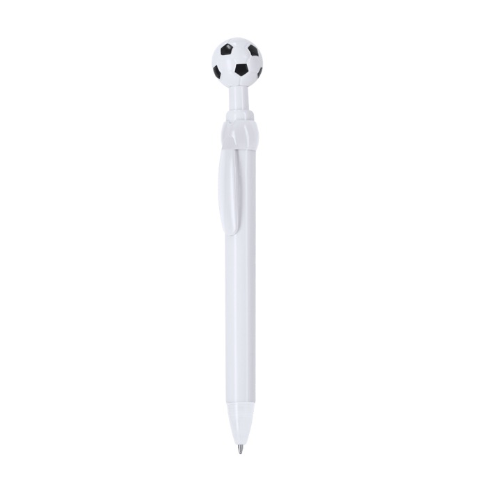 Klikpen met drukmechanisme, gemaakt van kunststof met een glanzende afwerking. Ontworpen voor comfortabel, dagelijks gebruik. De drukknop heeft een voetbaldesign. Zo vind je ’m snel terug op het bureau. Het geeft een subtiel themadetail, zonder gedoe. Je schrijft met blauwe inkt, geschikt voor notities, handtekeningen en formulieren op kantoor of aan de balie. Door het lichte formaat past hij goed bij wervingsacties, bedrijfssportevenementen of merkcampagnes bij de receptie.