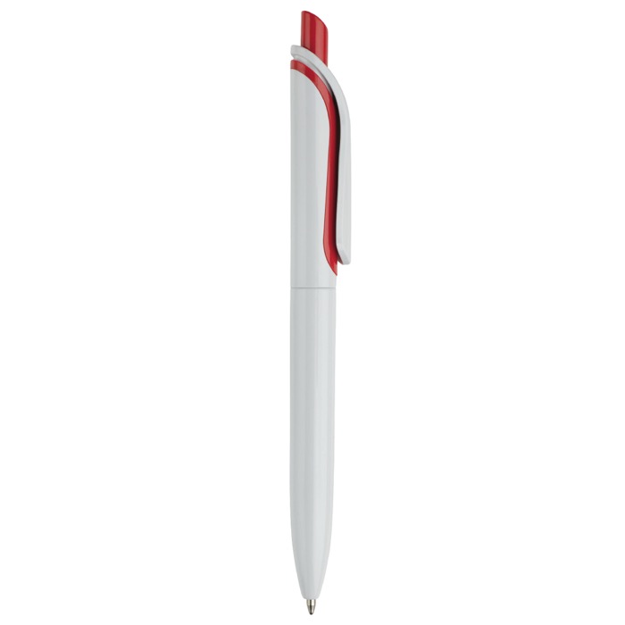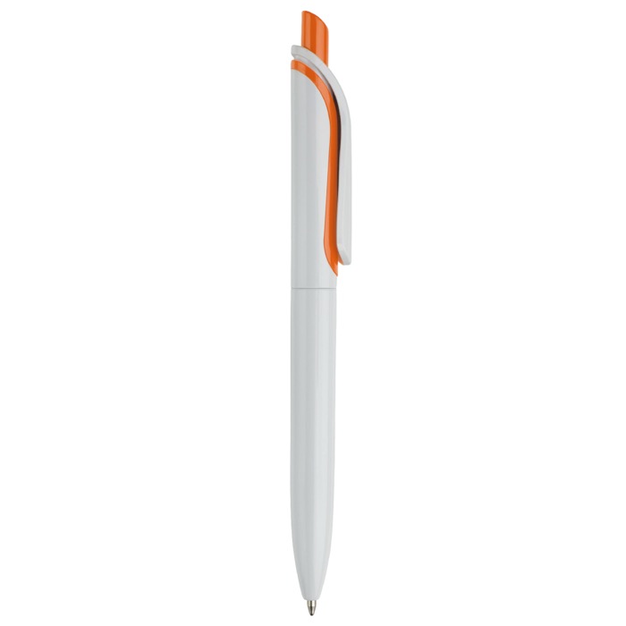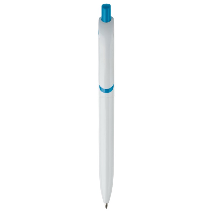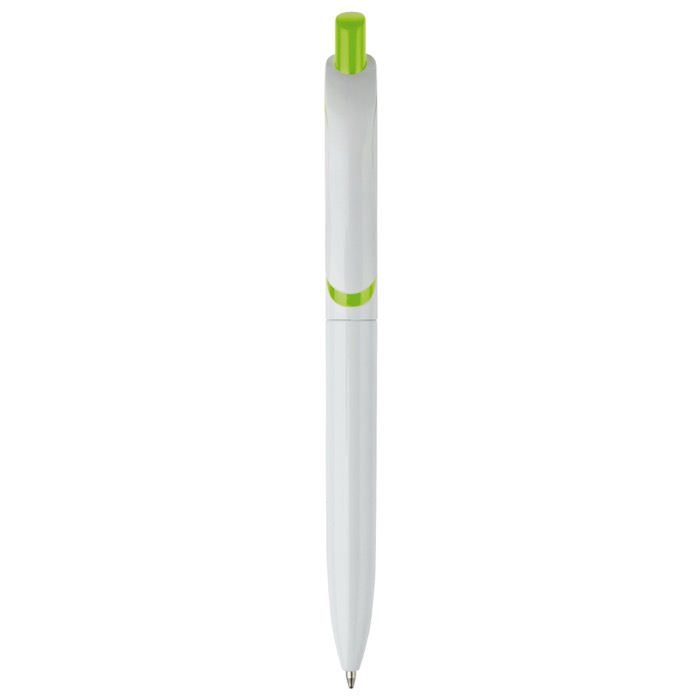 Witte plastic pen met kleurrijke drukknop gemaakt in de EU