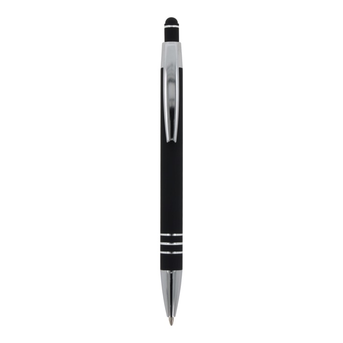 Aluminium pen met soft-touch afwerking en 3 zilveren ringen
