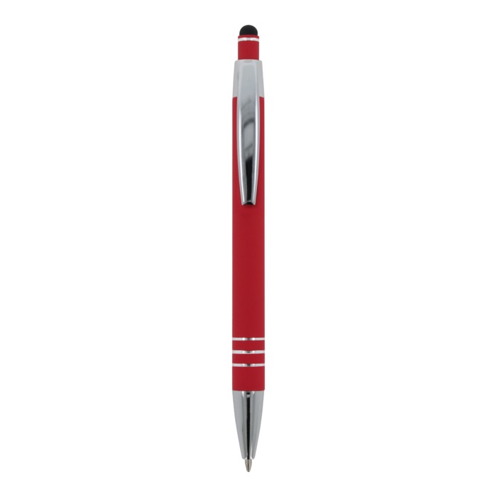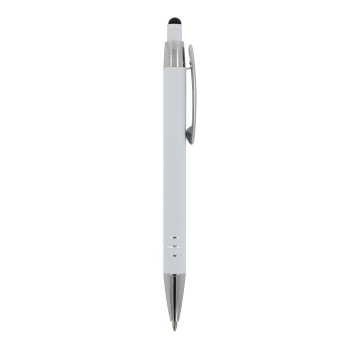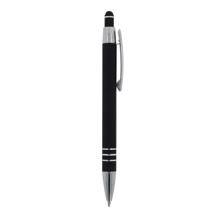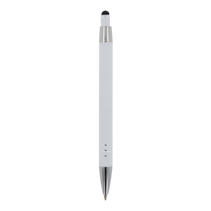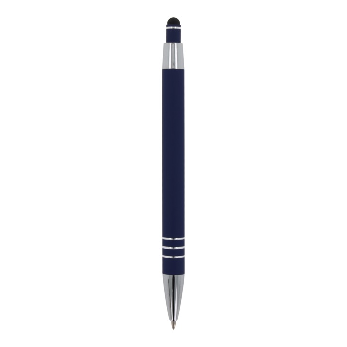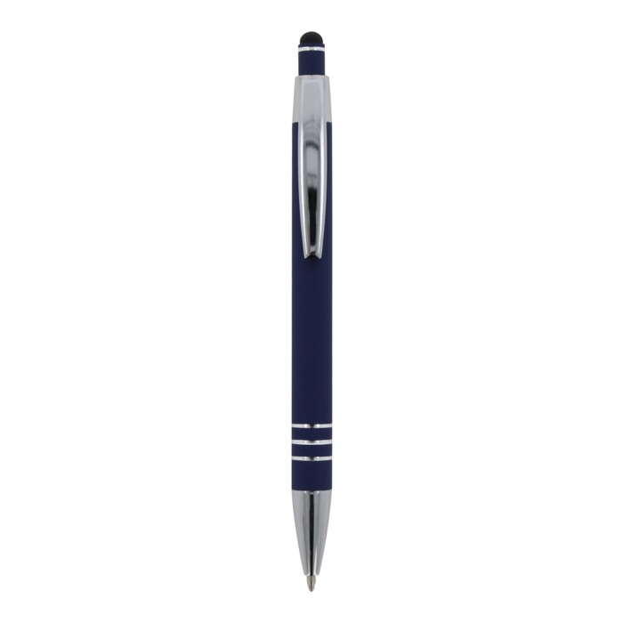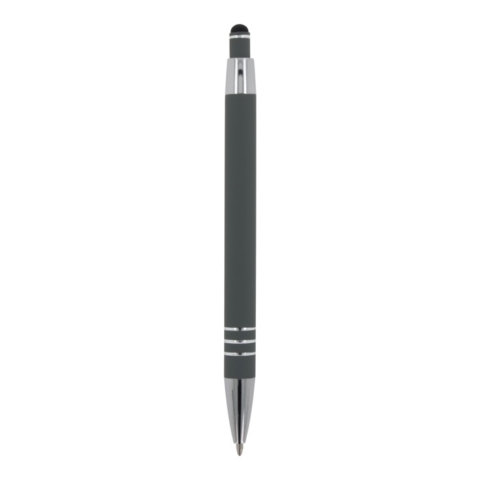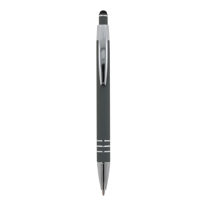 Aluminium balpen met elegante soft-touch afwerking en stylus. Met een solide metalen clip. Schrijfkleur: blauw.