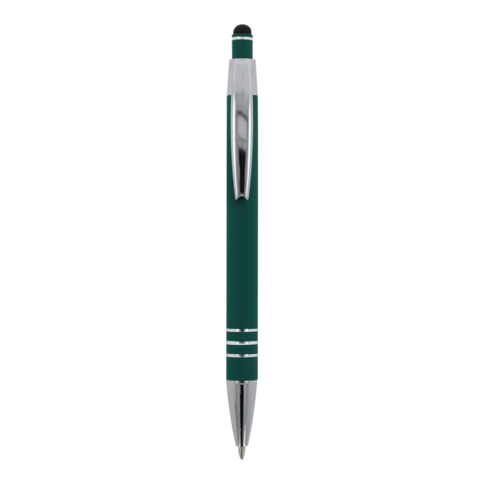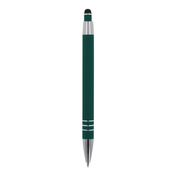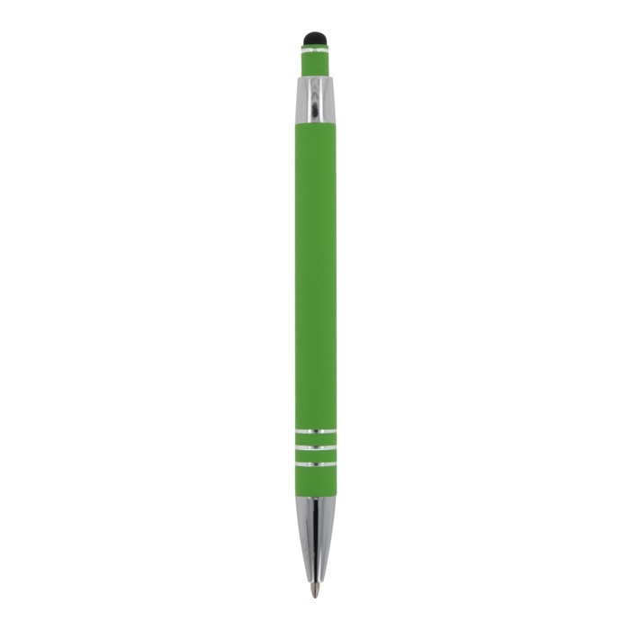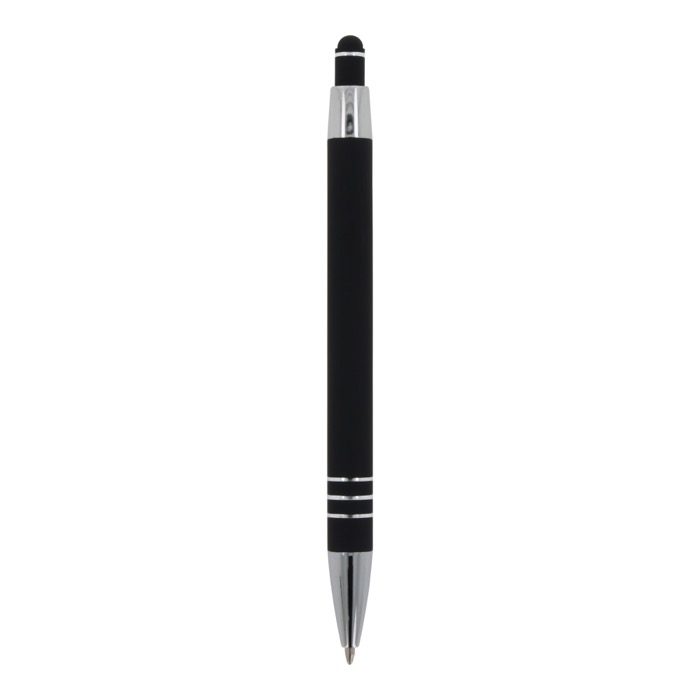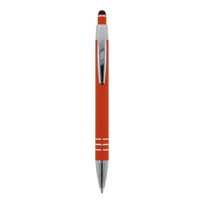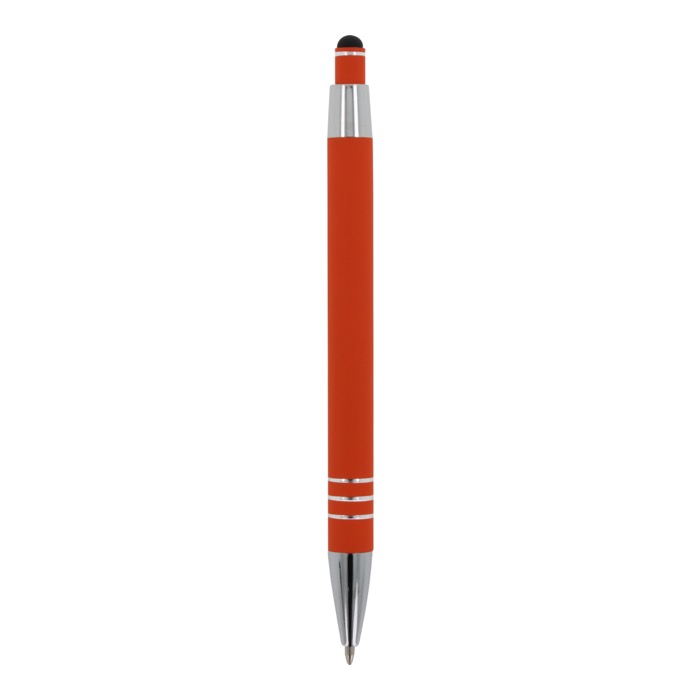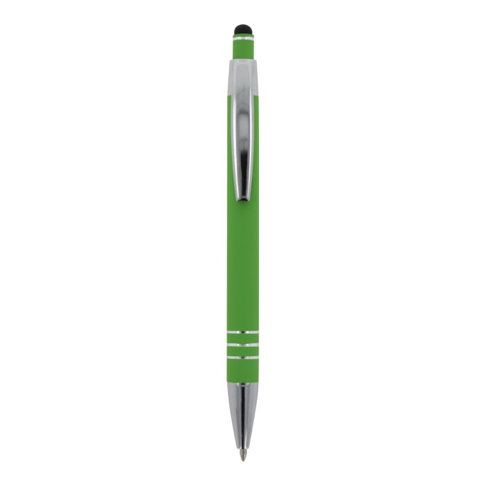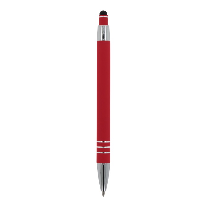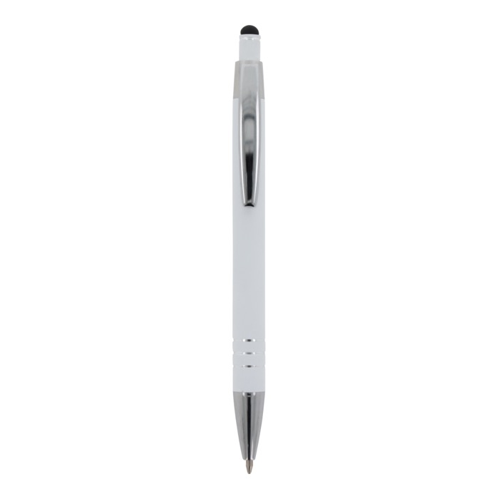 Aluminium balpen met elegante soft-touch afwerking en stylus. Met een solide metalen clip. Schrijfkleur: blauw.