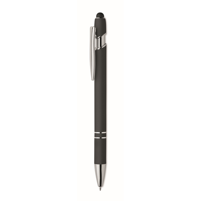 Goedkope aluminium pen met rubberen afwerking en zwarte inkt Glober