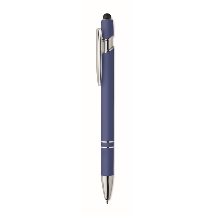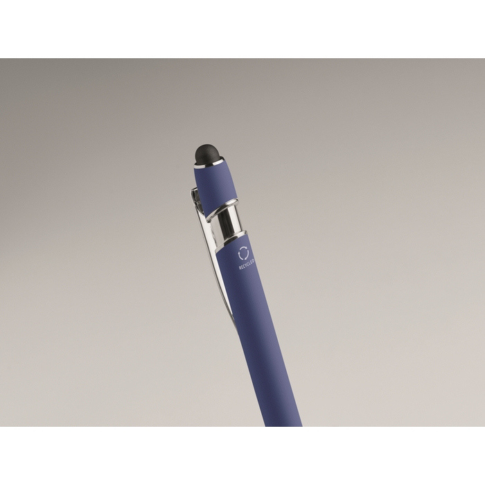 Gerecyclede aluminium pen met rubberen afwerking blauwe inkt