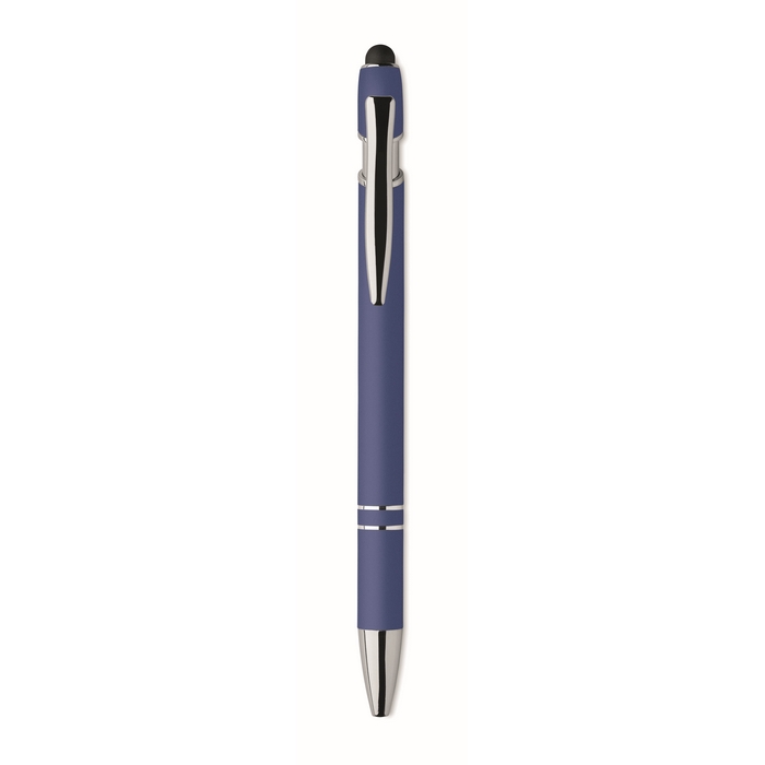 Gerecyclede aluminium pen met rubberen coating en blauwe inkt, geschikt voor dagelijks gebruik op kantoor of tijdens evenementen. Stevige metalen behuizing met zachte grip voor langdurig schrijven. Blauwe inkt zorgt voor duidelijke leesbaarheid. Compact formaat voor vergaderingen, beurzen of zakelijke bezoeken. Ideaal voor branding bij corporate acties, welkomstpakketten en acquisitiecampagnes.