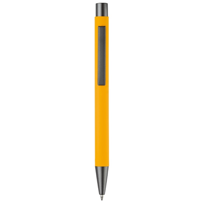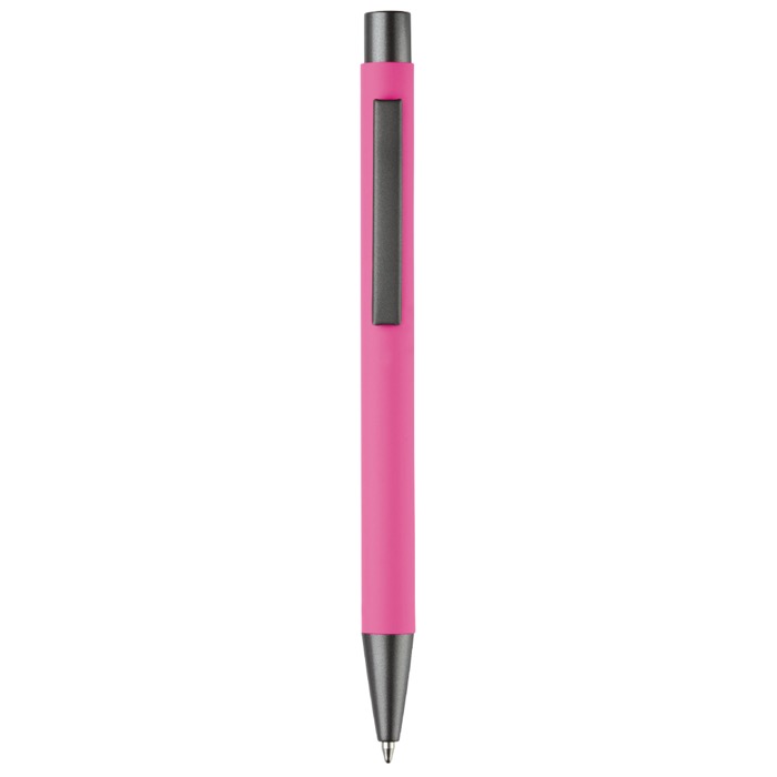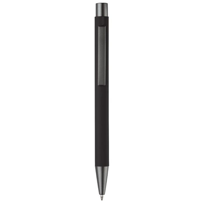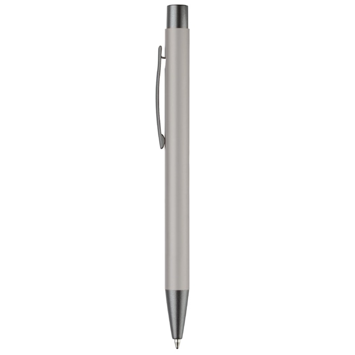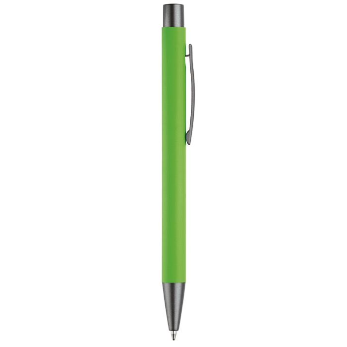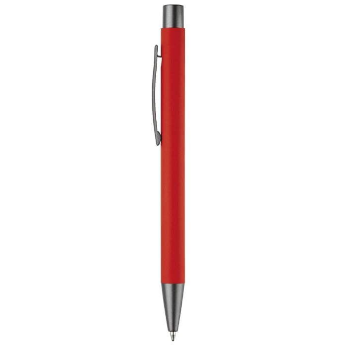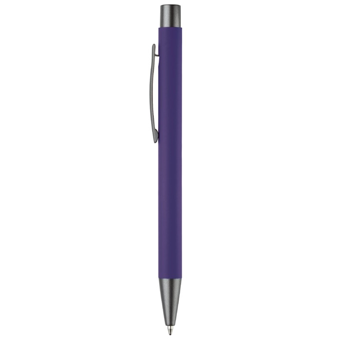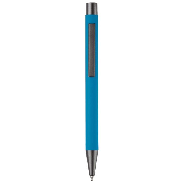 Aluminium balpen met elegante rubberised soft-touch afwerking. Voorzien van stevige metalen clip en leverbaar in moderne kleuren. Blauwschrijvende vulling.