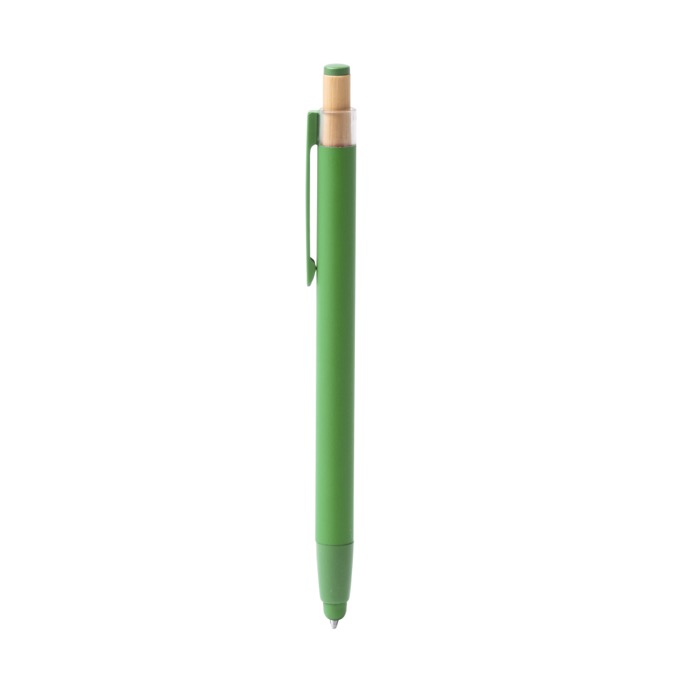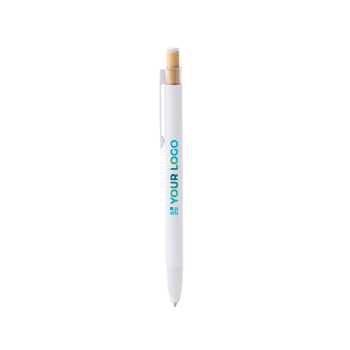 Balpen van gerecycled aluminium met matte afwerking, gemaakt voor comfortabel dagelijks gebruik op kantoor en tijdens klantbezoeken. Hij heeft een bamboe drukknop met kleurdetails, zodat je hem snel herkent. De bijpassende clip en punt zorgen voor een consistente uitstraling en maken het makkelijk om hem mee te nemen aan een notitieboek, in je zak of bij een badge. Inclusief jumbo vulling met blauwe inkt voor gelijkmatiger schrijven en minder vaak vervangen. Praktisch om uit te delen op beurzen, bij interne trainingen of merkacties.