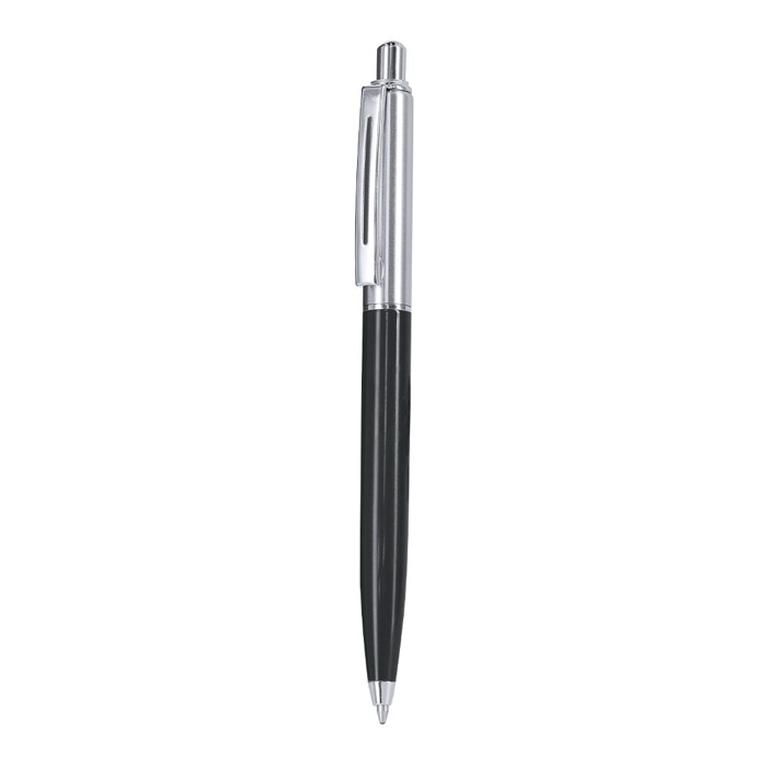 Pen met gemetalliseerde afwerking, drukknopmechanisme en intrekbare punt. Ontworpen voor comfortabel dagelijks gebruik. Met een klassieke binnenvulling met blauwe inkt voor een constante schrijfervaring en eenvoudig navullen. De gemetalliseerde clip maakt het makkelijk om ’m aan je broekzak, notitieboek of badge te dragen. De helft van de houder in een glanzende effen kleur helpt om afdelingen, teams of tijdelijke acties te onderscheiden. Een praktische keuze voor recepties, trainingen en bedrijfsevenementen met bedrukking.