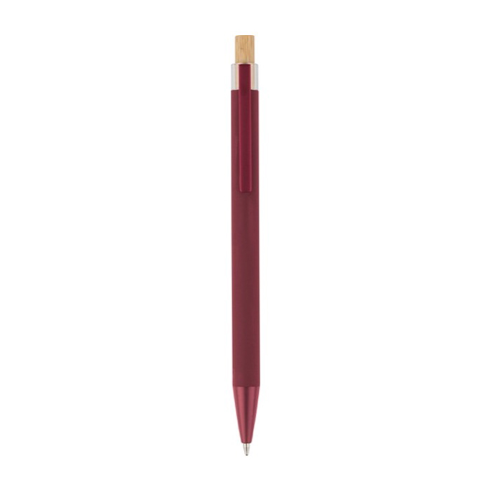 - Gerecyclede aluminium pen met bamboe drukknop