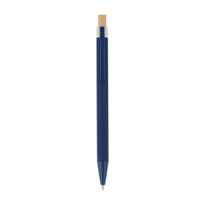 Gerecyclede aluminium pen met bamboe drukknop, blauwe inkt