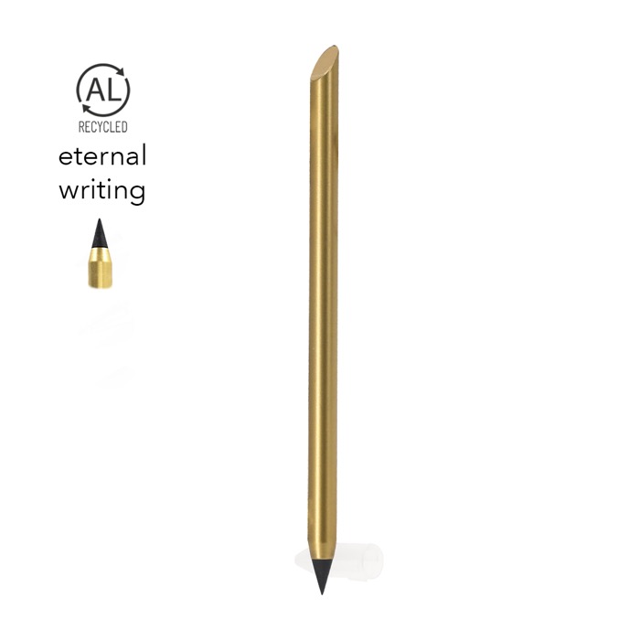 Duurzaam schrijfpotlood van gerecycled aluminium, gaat oneindig mee