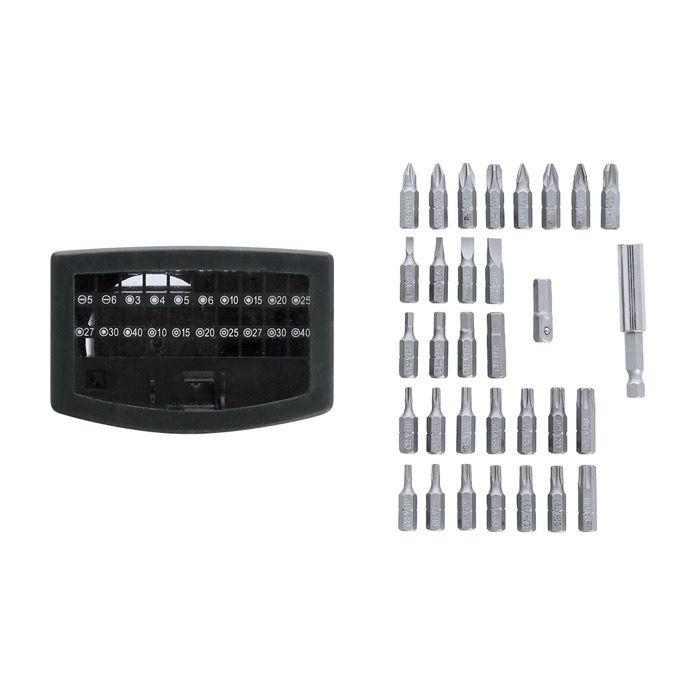 - Bevat 32 accessoires: kruiskop, torx, plat en meer