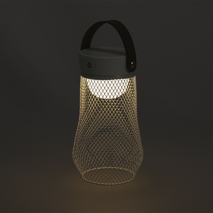 Designlamp van metaal. Voorzien van bovenste handgreep in zacht PU. Beschikt over 3 lichtstanden (wit, neutraal en warm). Uitgerust met 24 LEDs. Geschikt voor zowel binnen- als buitenruimtes. Geïntegreerde touchknop voor aan/uit en lichtmodusselectie. Voorzien van 1.200 mAh oplaadbare batterij en Type-C ingang.