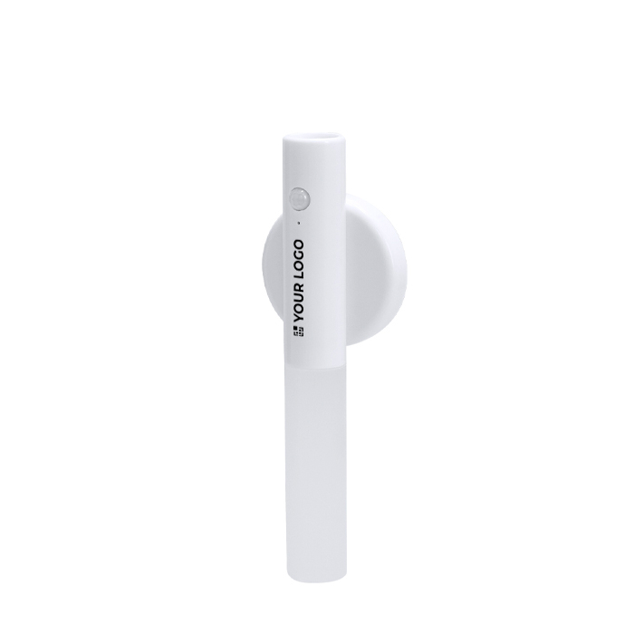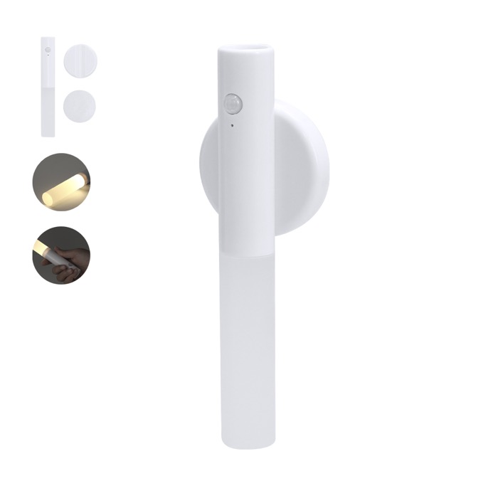 LED-noodlamp van kunststof met een stevige behuizing en een magnetische basis met plakstrip om hem op oppervlakken te bevestigen. Hij heeft een knop aan de voorkant voor snel inschakelen en meerdere magneten aan de achterkant om hem makkelijk op metalen plekken te plaatsen. Met bewegingssensor met indicatielampje en een detectiebereik van 2-3 meter, handig in gangen, magazijnen of voertuigen. Werkt op een oplaadbare batterij en wordt geleverd met een bijpassende USB-A-naar-USB-C-oplaadkabel. Een praktische optie voor kantooruitrusting, interne veiligheid of relatiegeschenken met logo.