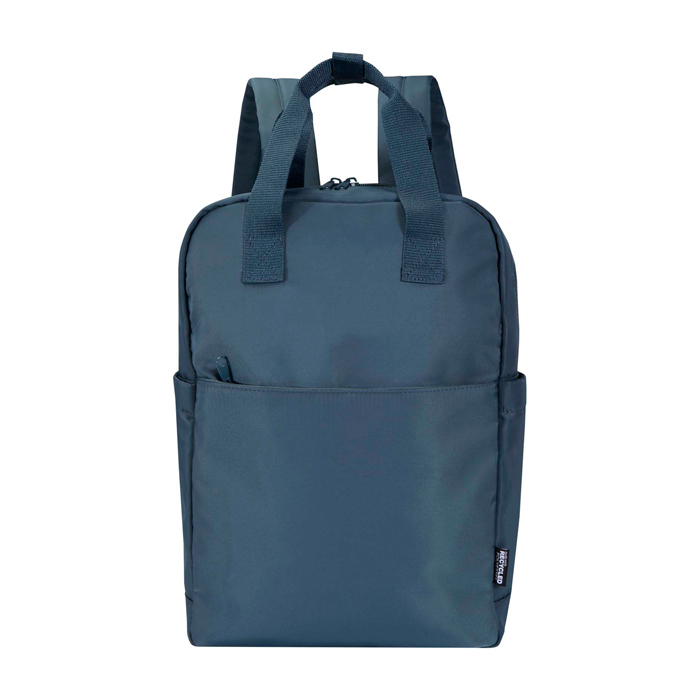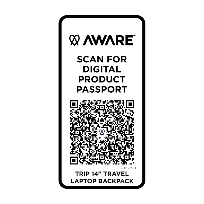 De Trip Aware™ gerecyclede laptoprugzak is een compacte, lichtgewicht rugzak ontworpen voor gestroomlijnd reizen en dagelijks gebruik. De rugzak is gemaakt van duurzaam 290D twill polyester met een zachte gebreide achterkant en gevoerd met RPET 210D/PU en combineert functionaliteit met een strak, praktisch ontwerp. Hij heeft twee zijvakken voor waterflessen, dubbele handgrepen en comfortabele schouderbanden. In het voorvak met rits kun je een paspoort, pennen en sleutels overzichtelijk opbergen, terwijl je in het hoofdvak ruimte hebt voor een notitieboek of tablet. Een apart 14” laptopvak en een trolleyhoes aan de achterkant maken hem bijzonder geschikt voor op reis. Elke tas wordt ook geleverd met een Aware™ tracer. Met deze innovatieve functie kunnen gebruikers de oorsprong en de reis van hun artikel volgen via een QR-code, waardoor de transparantie in de toeleveringsketen wordt vergroot en er een sterkere band is tussen het product en het productieproces. Inhoud: 9 liter.