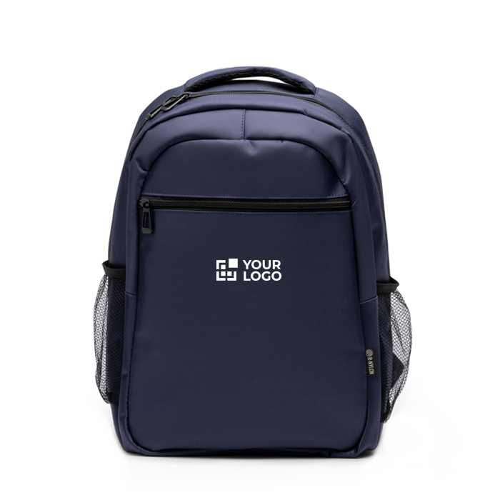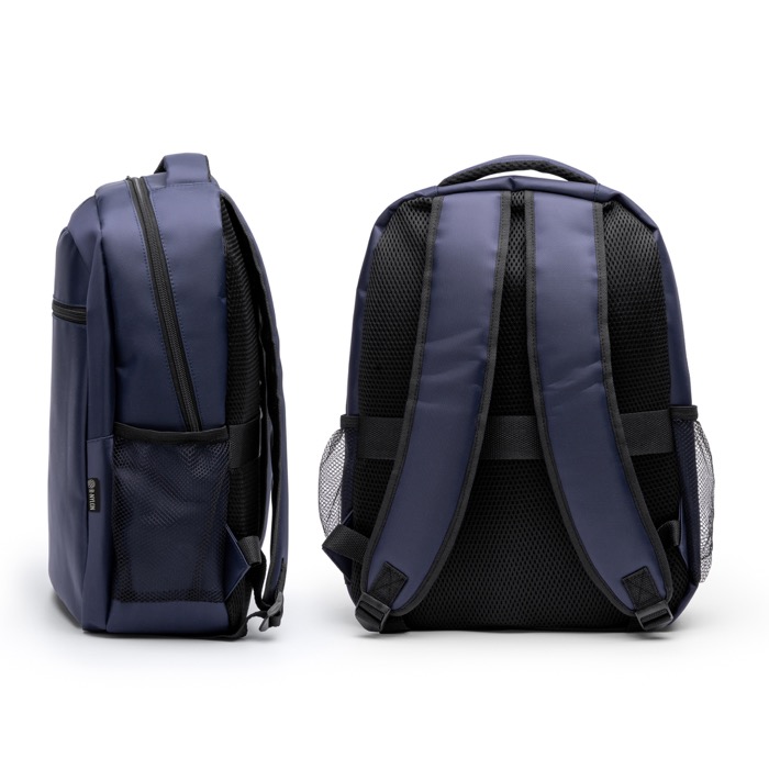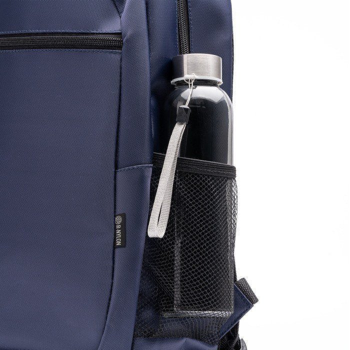 Executive rugzak van gerecycled nylon met een ruim hoofdvak en een gewatteerd vak voor een 15” laptop. Voorzien van een buitenvak en twee zijvakken, evenals gewatteerde schouderbanden en rugpaneel. Inclusief band om aan een trolley te bevestigen.